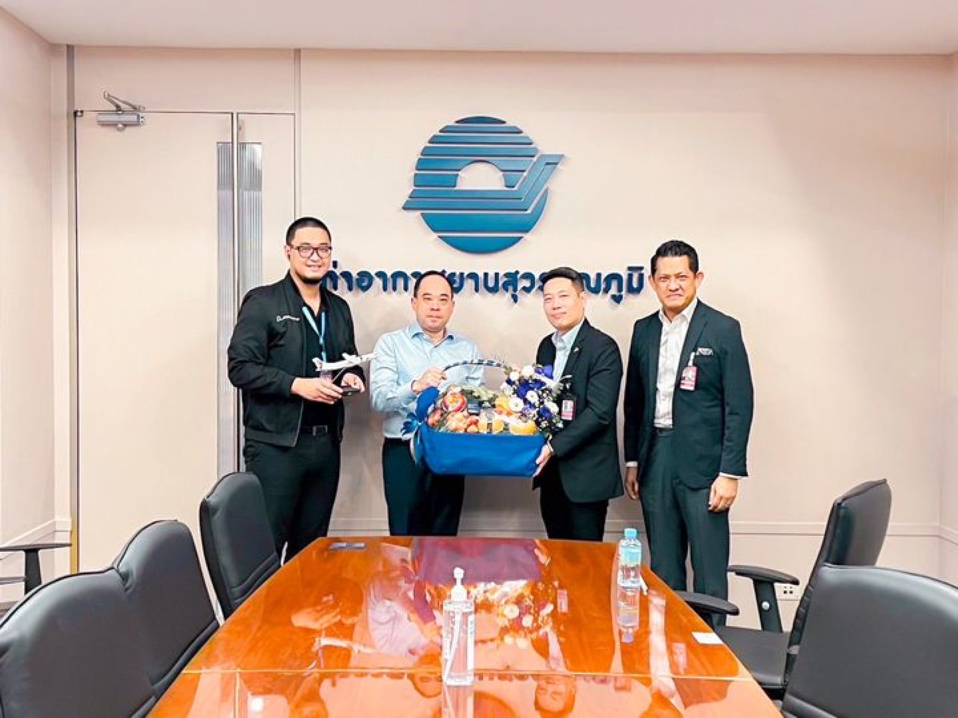 Mr. Nat Boonyavichkanont, the CEO of PATTAYA AVIATION Co., Ltd. and PATTTAYA AIRWAYS Co., Ltd., visited Mr. Kittipong Kittikachorn, the Director of Suvarnabhumi Airport, at the Suvarnabhumi meeting room, 5th floor, AOB building.