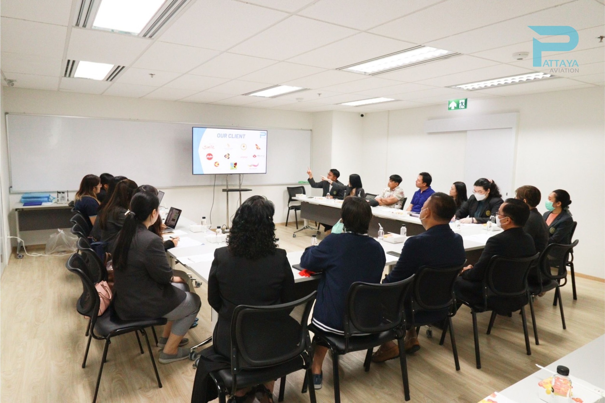On January 22, 2024, PATTAYA AVIATION Co., Ltd. had the opportunity to welcome the Dean and faculty members from the International College , Chiang Mai Rajabhat University. A group of 14 visited the company to discuss and talk about signing a Memorandum of Understanding (MOU) between the International College , Chiang Mai Rajabhat University and PATTAYA AVIATION Co., Ltd. The company's Vice Chairman, Mr. Kocharin Piemchaoto, and Mr. Patsong Ampawan were the hosts and guided the tour of the company.