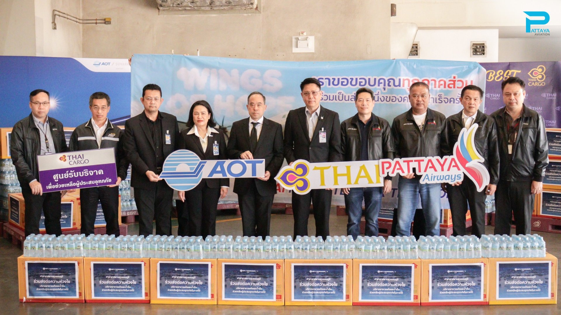 On November 27, 2025, PATTAYA Aviation Co., Ltd. joined the "WINGS OF HOPE" humanitarian mission. This initiative is a collaborative effort led by PATTAYA Airways alongside key aviation partners, including Airports of Thailand (AOT), the Civil Aviation Authority of Thailand (CAAT), Thai Airways International, MJETS, and BBN Airlines (Thailand).