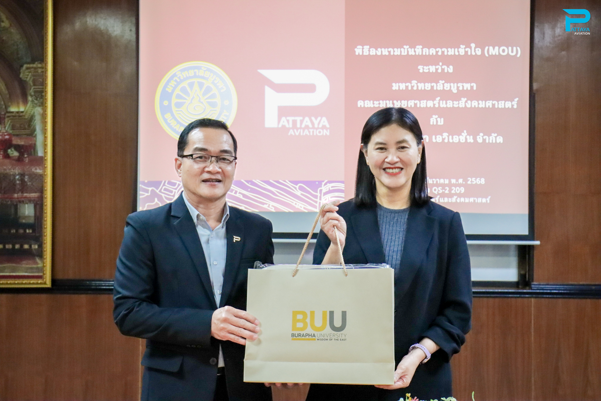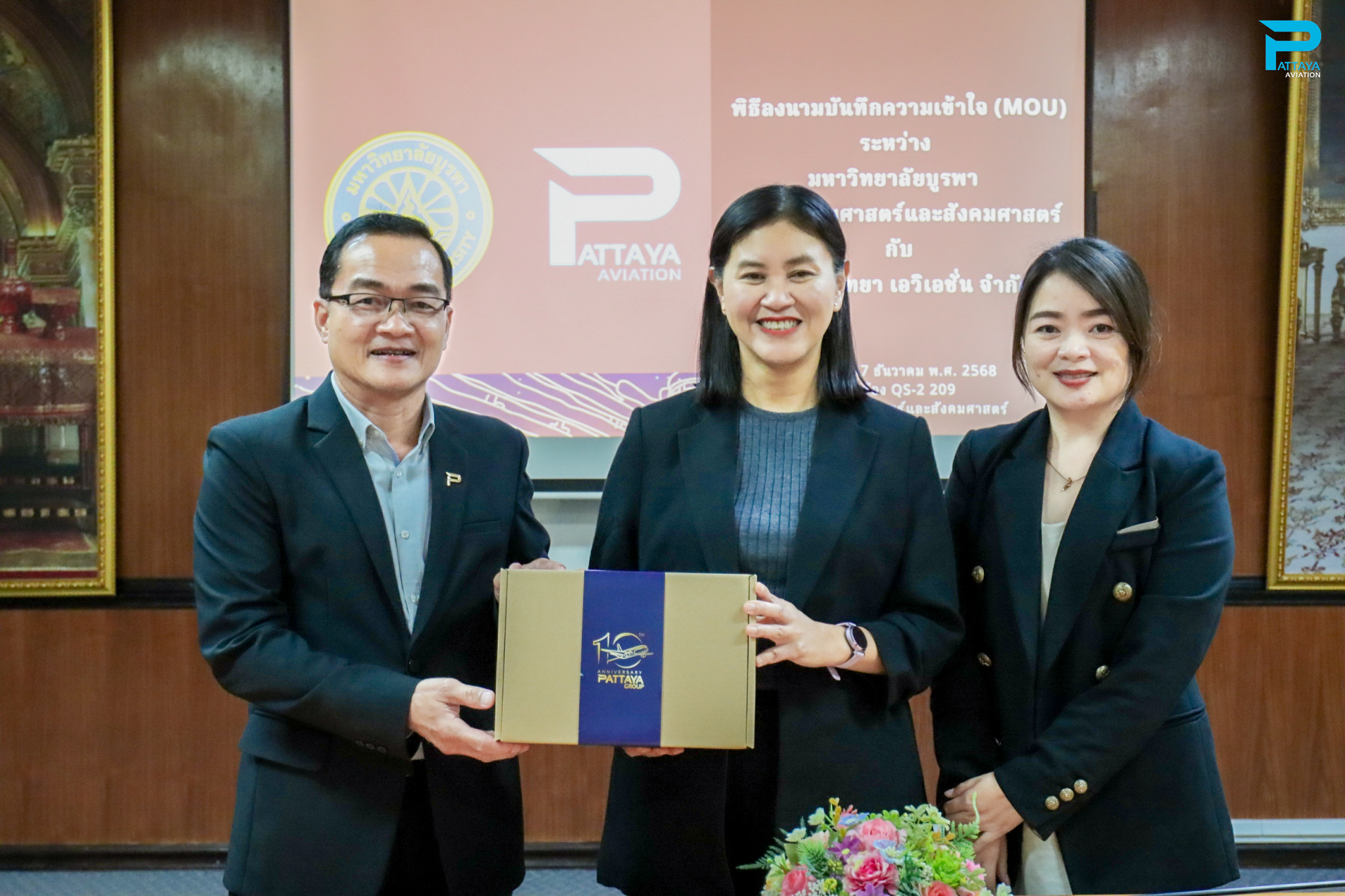 On December 17, 2025, PATTAYA Aviation Co., Ltd. participated in the signing ceremony of a Memorandum of Understanding (MOU) with the Department of Western Languages, French for Communication Program, Faculty of Humanities and Social Sciences, Burapha University. This partnership aims to promote academic cooperation and develop students' potential to ensure they are career-ready for the labor market.