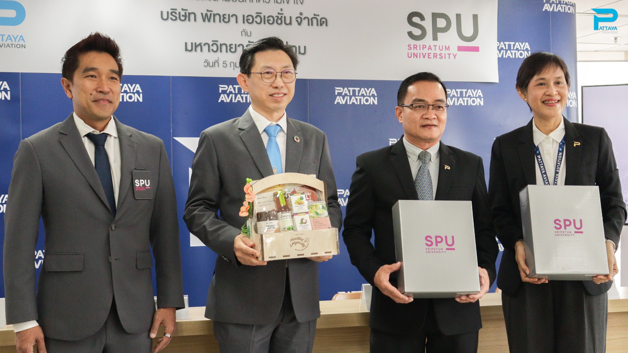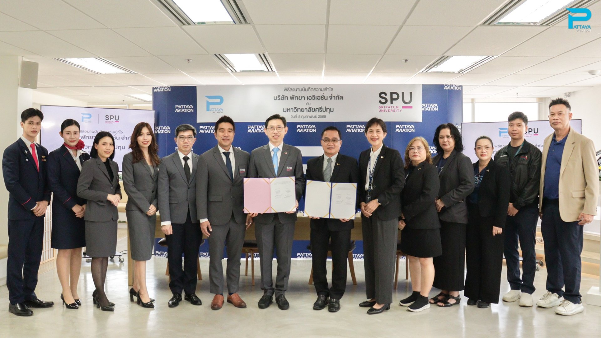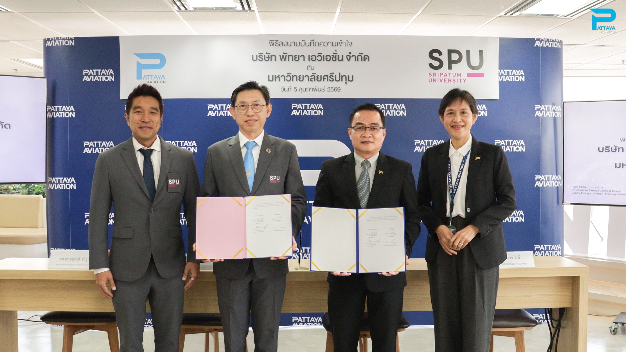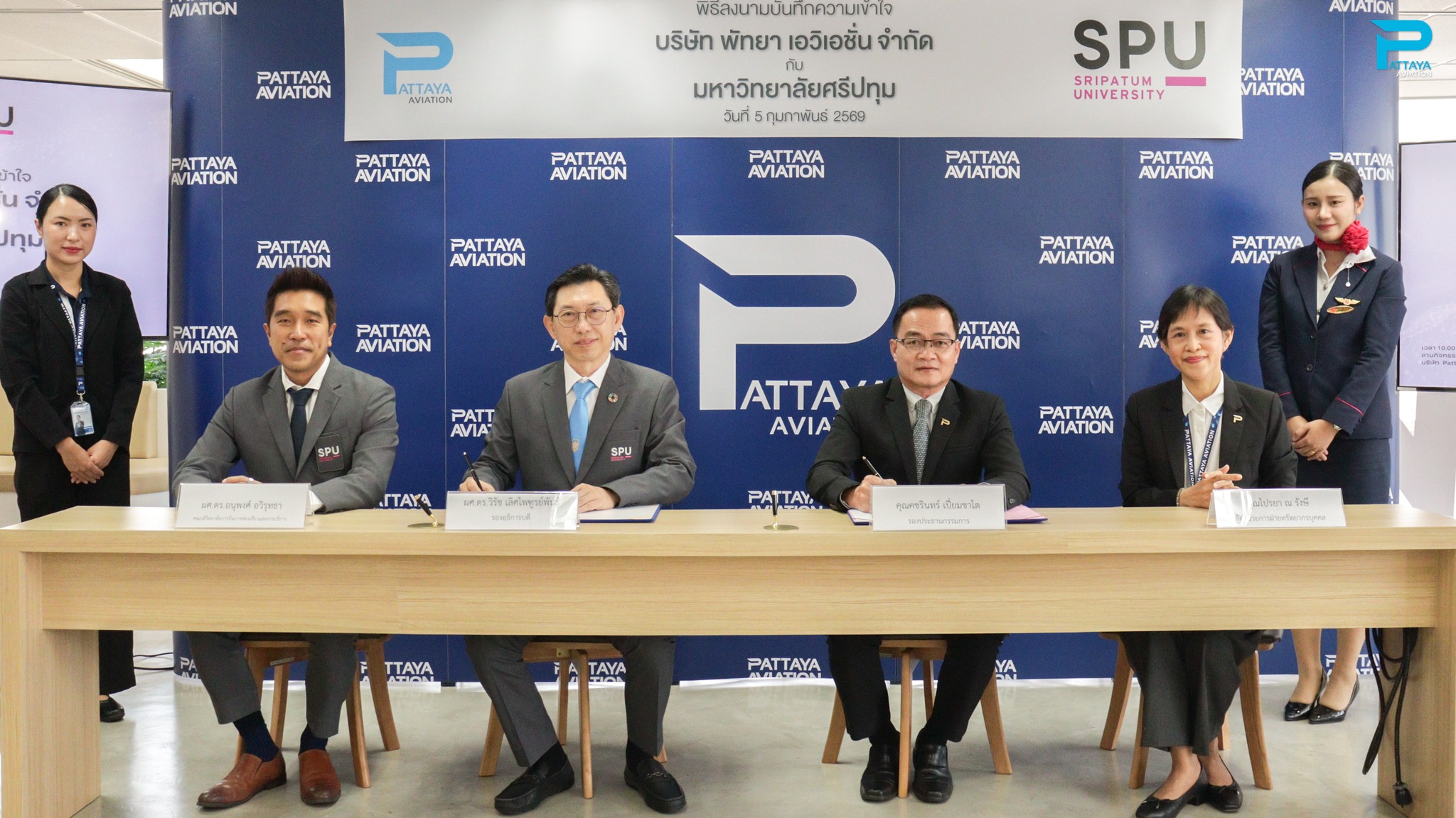 The signing ceremony was honored by Mr. Kocharin Piamchato, Vice President of Pattaya Aviation Co., Ltd., and Asst. Prof. Dr. Wirat Lertpaitoonpan, Vice President of Sripatum University, who signed as representatives of both parties.